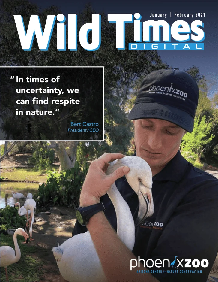 Written and designed by Phoenix Zoo staff, our Wild Times magazine is distributed twice a year to our growing list of conservation enthusiasts worldwide. From animal and conservation news, to program offerings and special events, Wild Times embodies our creed of inspiring others and motivating them to care for the natural world. Furthering our commitment sustainability, the Arizona Center for Nature Conservation isn’t just about going green; we’re living it.